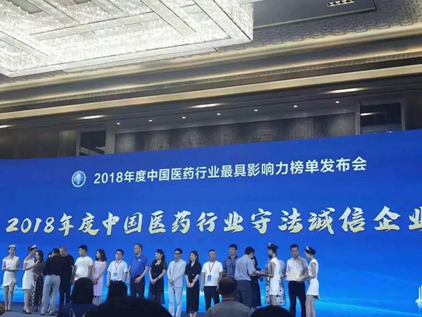 云南騰藥榮膺“2018年度中國醫藥行業(yè)守法誠信企業(yè)”。